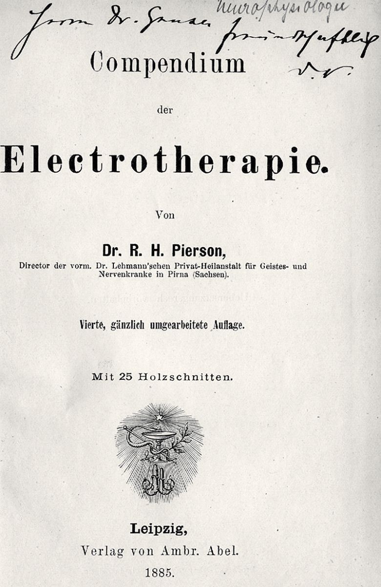 1873 ließ sich Dr. Reginald Pierson in Dresden als Facharzt für Nervenkrankheiten und Elektrotherapie nieder. Außerdem übte er in den Jahren 1882 -1884 die Funktion eines Distrikts- und Oberarztes am städtischen Siechenhaus Dresdens aus. In den folgenden 10 Jahren (1873 – 1883) arbeitete Pierson neben seiner Facharzttätigkeit an zahlreichen Veröffentlichungen auf dem Gebiet der Psychiatrie: 1880 erschien "Die Localisation der Hirnerkrankungen“, 1883 "Über Polyneuritis acuta“ und bereits 1875 seine bedeutende Monographie "Compendium der Electrotherapie“. Dieses Lehrbuch erschien bis 1893 in 6 Auflagen und wurde ins Russische, Holländische, Italienische und Spanische übersetzt. Besonders auf dem Gebiet der Elektrotherapie, die er in seiner nervenärztlichen Privatpraxis erfolgreich anwandte, zählte Pierson zu den führenden Spezialisten Deutschlands.