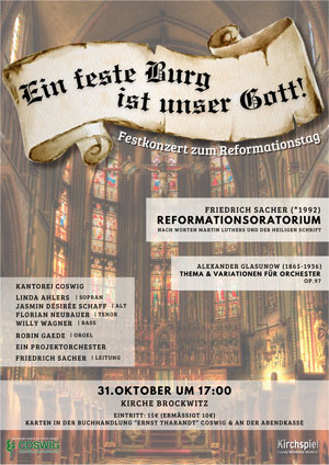 Auch in diesem Jahr freuen wir uns, am Reformationstag wieder ein festliches Konzert in der Brockwitzer Kirche ausrichten zu können.