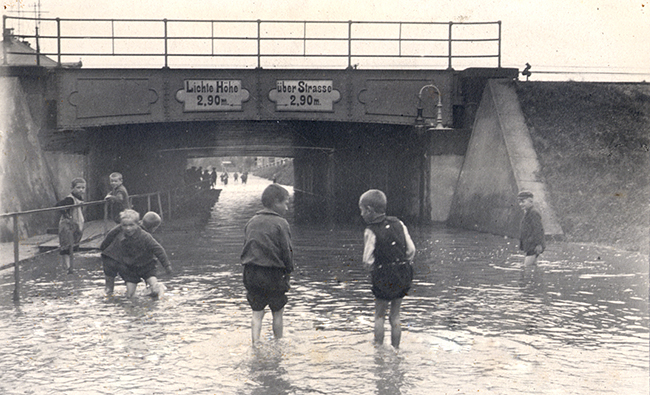 Oft stand die Brücke nach heftigen Regenfällen unter Wasser. (Foto von 1912)