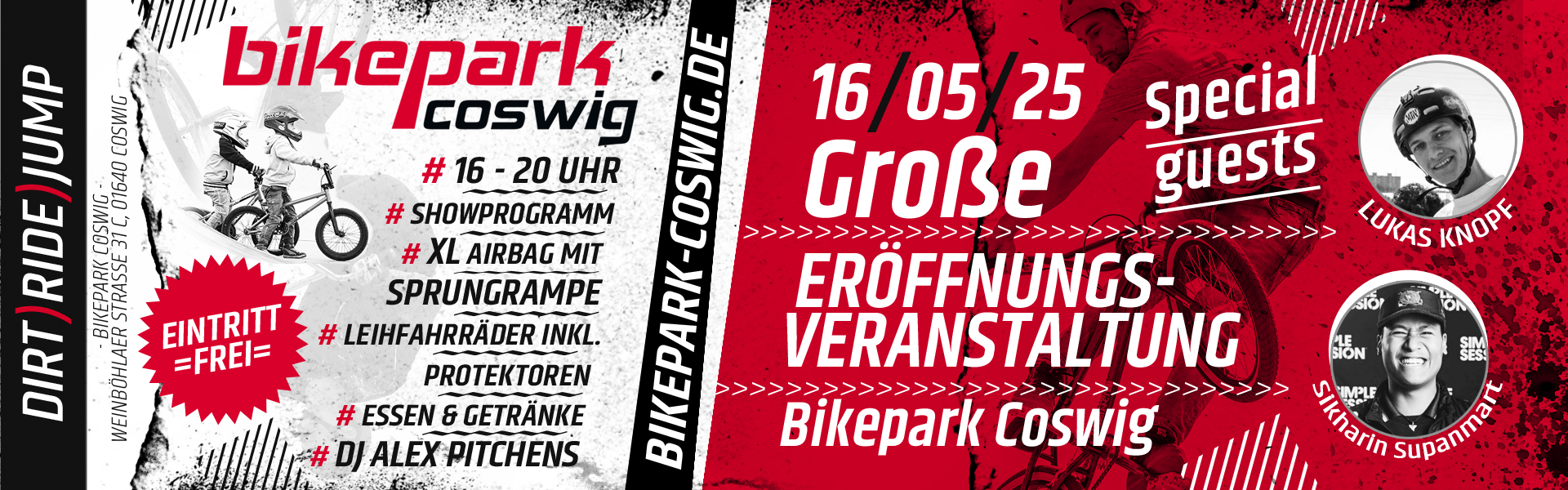 Am Freitag, den 16. Mai 2025, ist es endlich soweit: Der neue Bikepark Coswig öffnet offiziell seine Tore! Von 16:00 bis 20:00 Uhr erwartet euch ein actionreiches Programm mit Freestyle-Shows, Autogrammstunde und vielem mehr – und das alles bei freiem Eintritt!