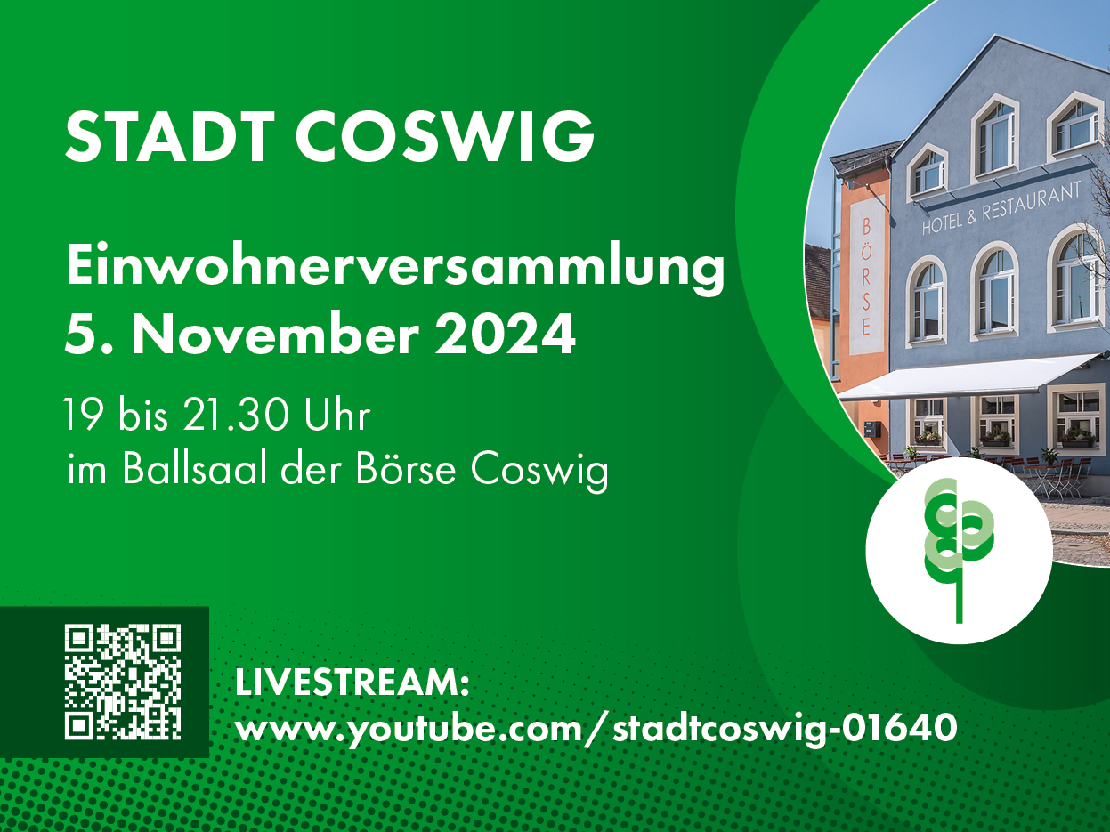 Die nächste Einwohnerversammlung findet am Dienstag, dem 5. November 2024, im Ballsaal der Börse statt.